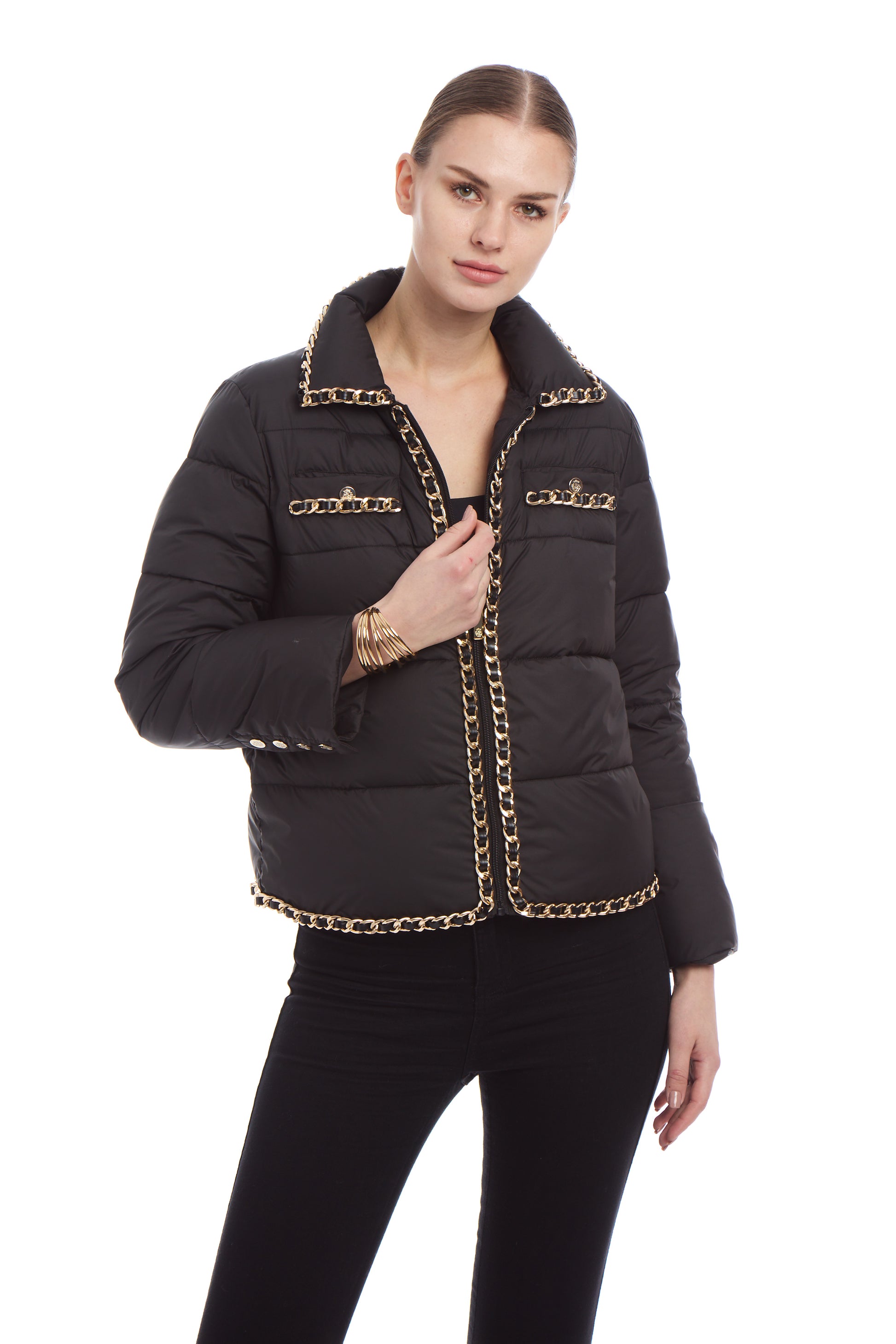 CoCo Zipper puffer w/ chanel inspired chains.