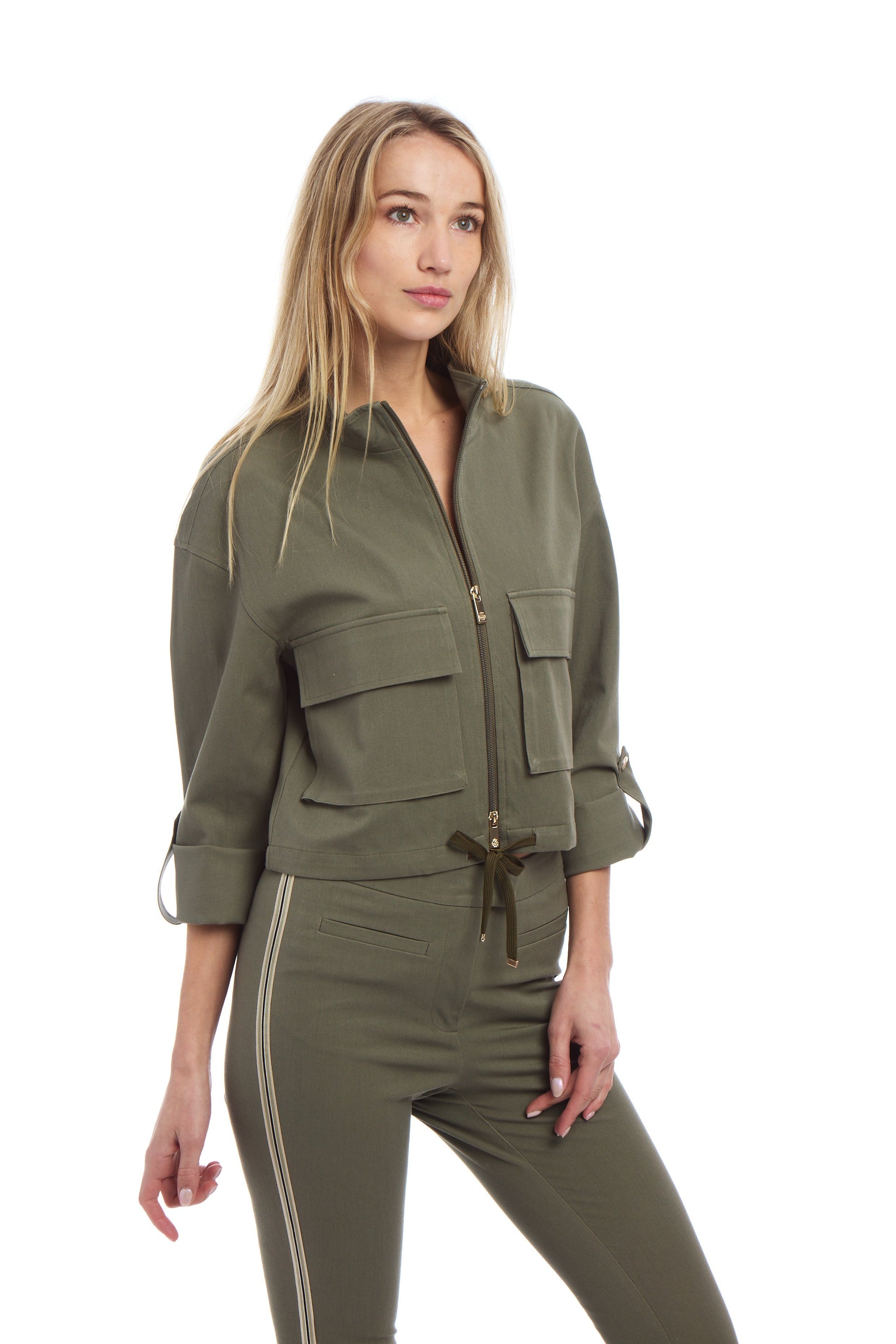 Safari Anorak Crop Jacket with adjustable roll up sleeves. Stretch Cotton Twill.