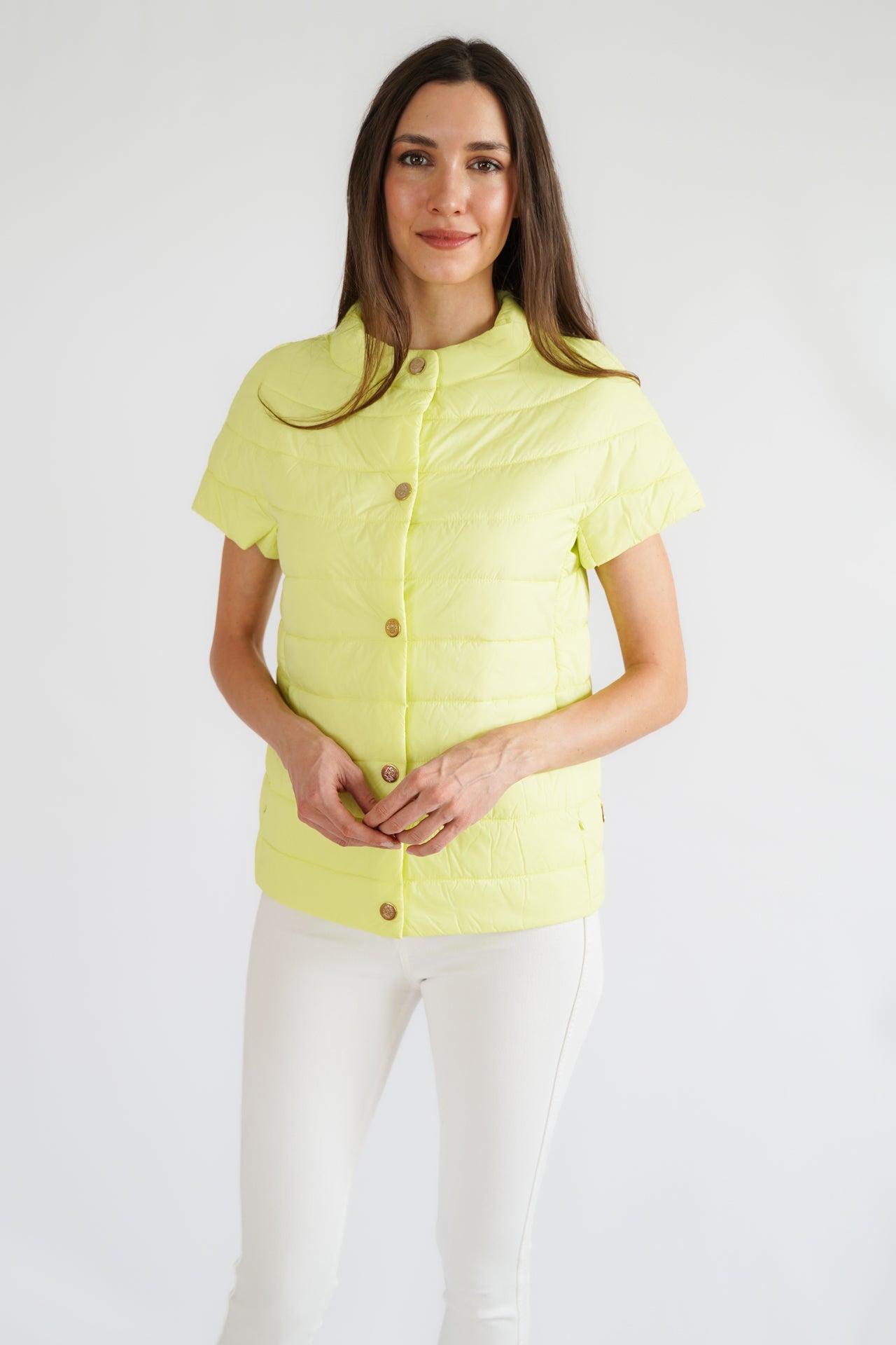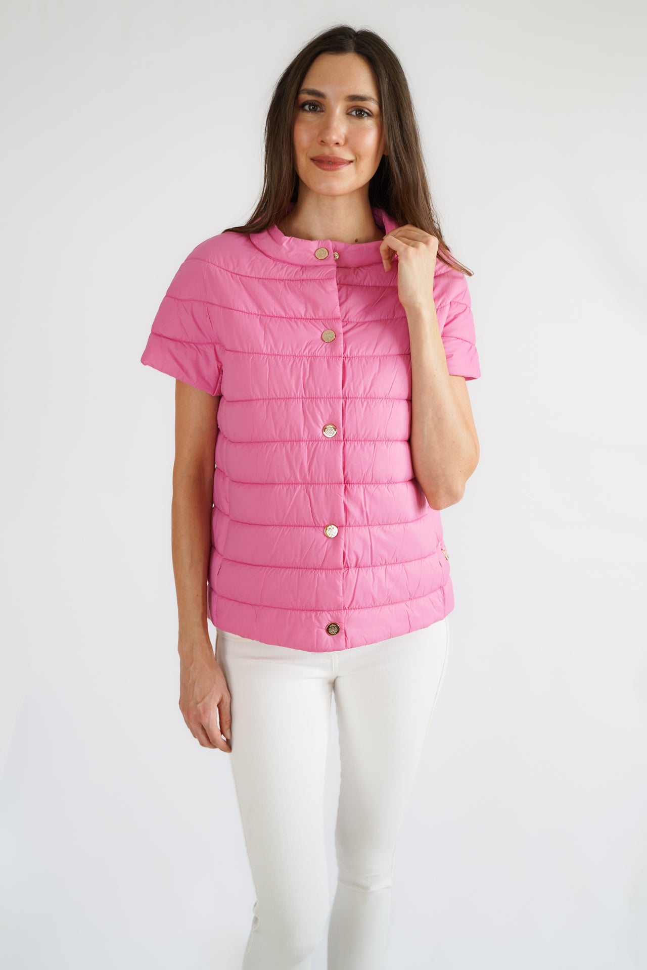 Our best selling Audrey Puffer with gold logo snaps and side pockets! Final sale, no returns or exchanges.