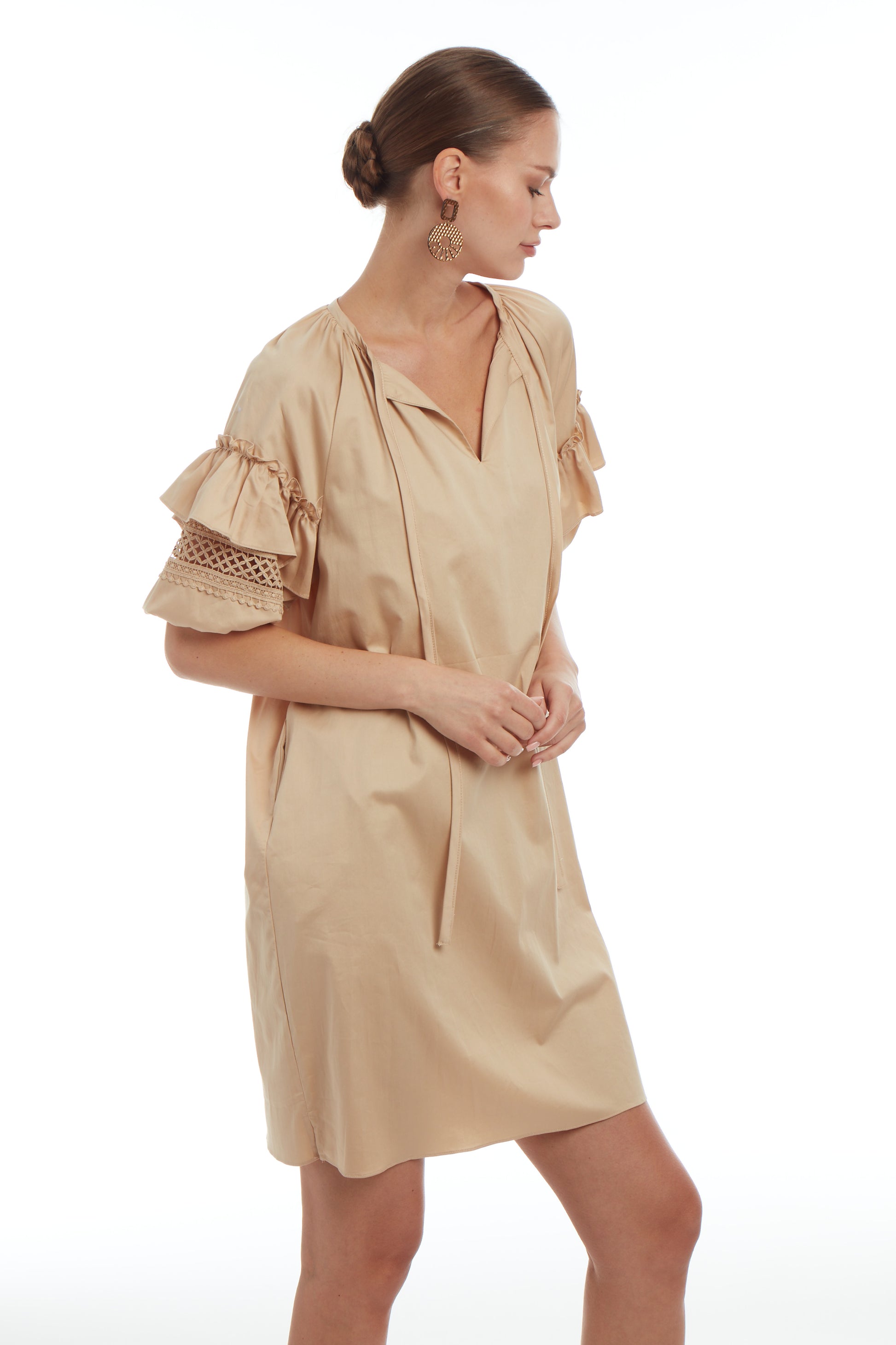 Claudette Dress with French lace sleeves. Side pockets. Final sale, no returns or exchanges.