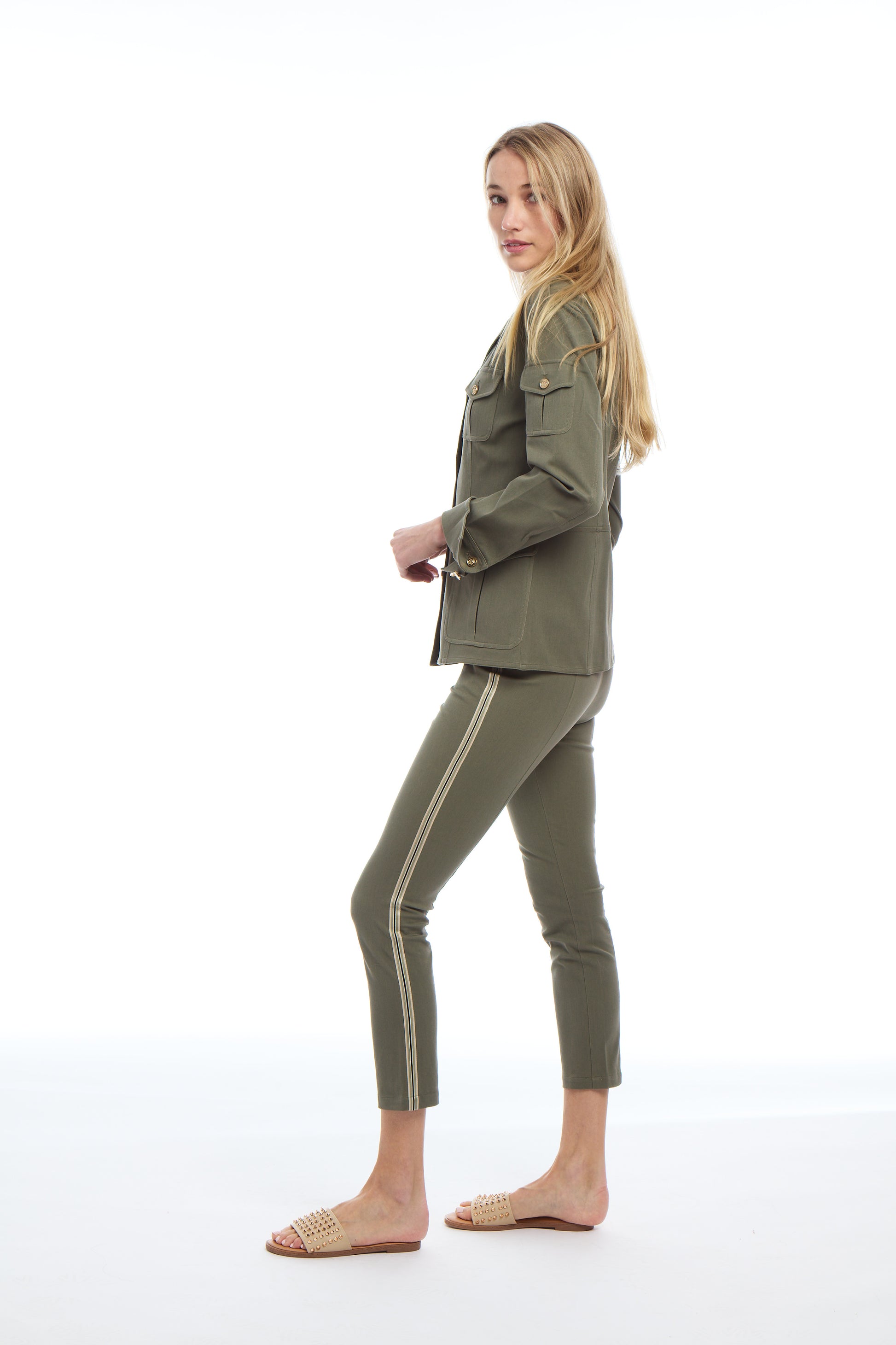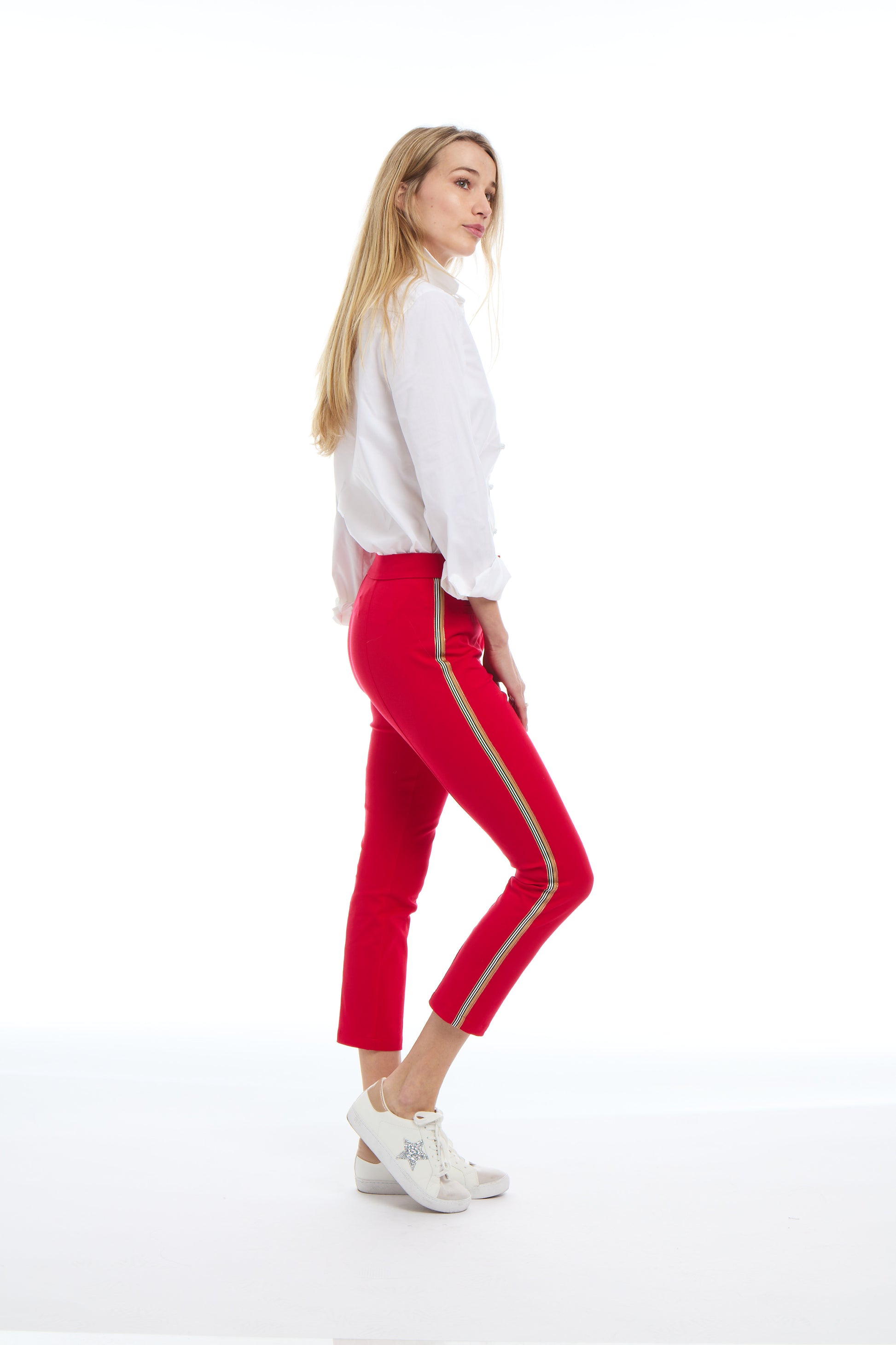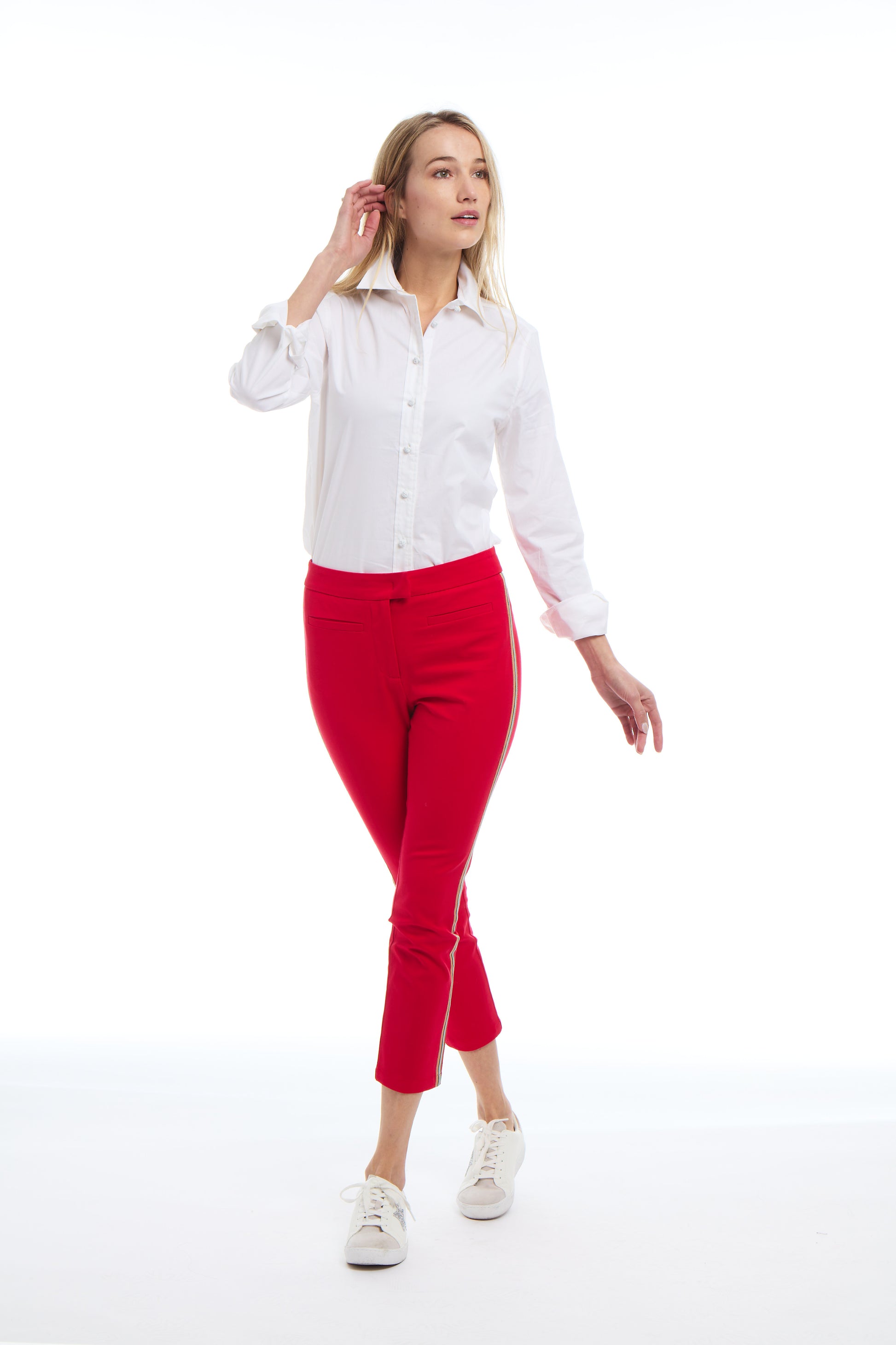 Stretch Cotton/ Nylon Stretch Capri Pants. With side Gros Grain trimming.