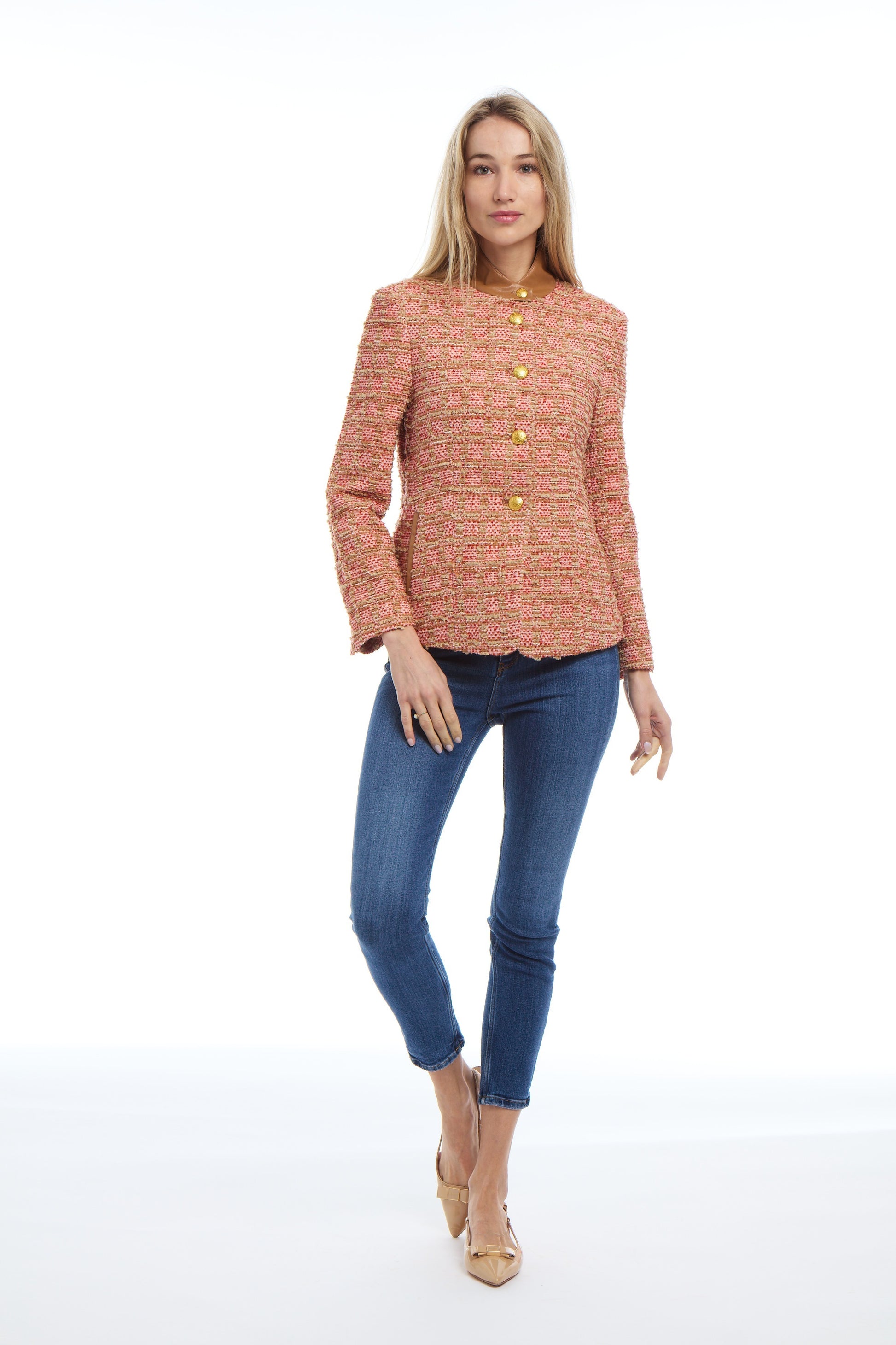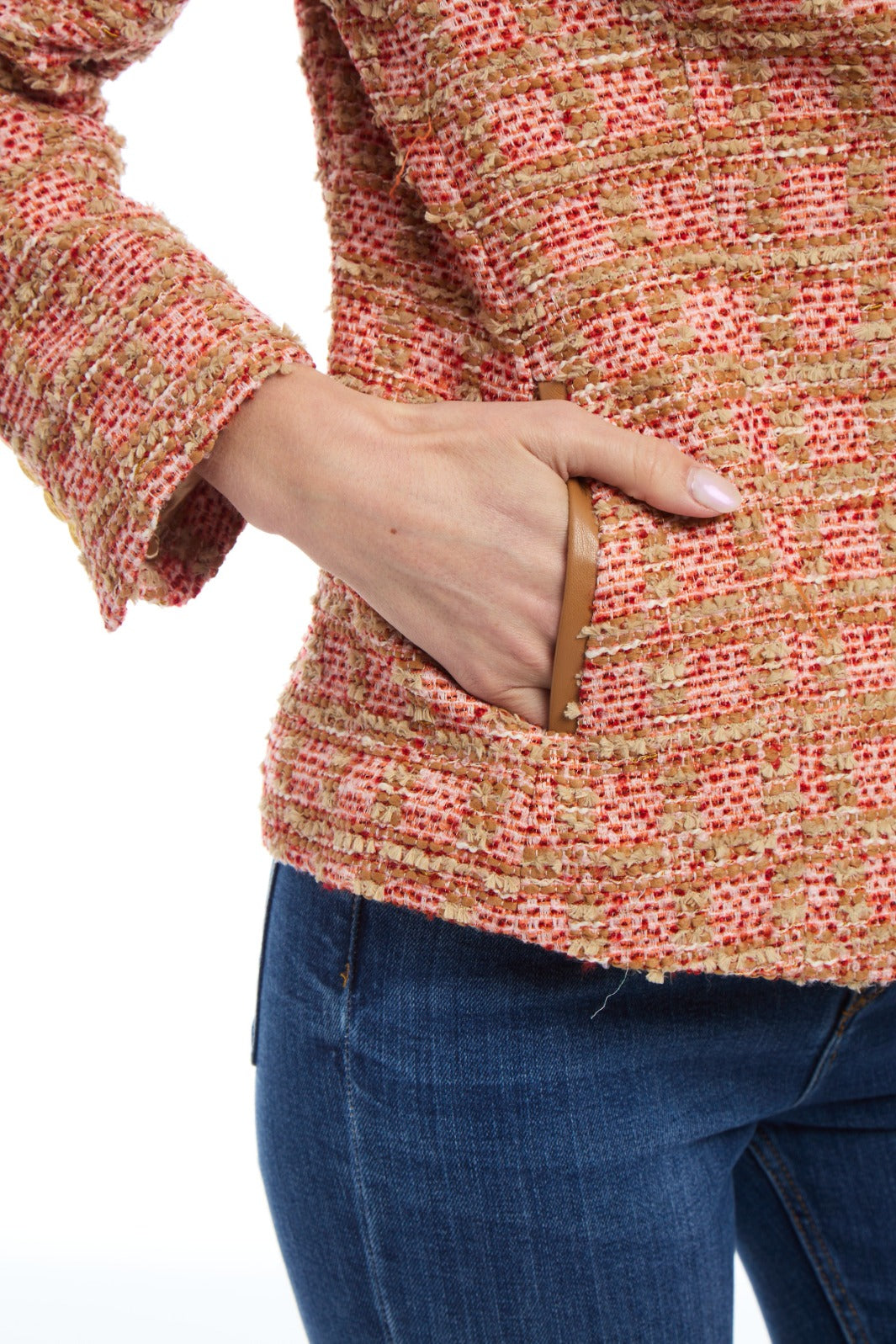 Windsor Notch Blazer w/ vegan leather collar trimming. Inseam pockets. Imported fabric from France. Fully Lined.